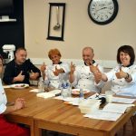Строгото жури в състав: инж. Юлия Панджерова, инж. Светлана Генова, chef Ради Стамболов, chef Борислав Екзархов, шеф Георги Георгиев и шеф Борислав Асенов от Robusta Ltd. имаше нелеката задача да оцени всяка една презентация и да дегустира изпитните задачи.