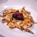 Гвоздеят в програмата бяха невероятните палачинкови талиатели на шеф Стамболов – фламбирани и хрупкави, с Rote Gruetze (рьоте грютце) – мариновани горски плодове с червено вино и аромат на канела – истинско удоволствие за небцето.